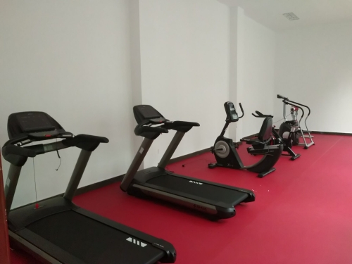 健身房设置在报告厅二楼,设置了休息室、器械室、瑜伽室,其中配置跑步机2台、登山机1台、动感单车1台、卧式健身车1台、按摩美腰机1台、瑜伽垫6床。6月15日,地垫铺贴及器材配置等相关工作顺利完成,欢迎大家光临。